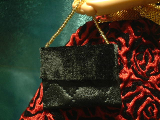 バッグも手作り。革のはぎれとトップスの余り布で作りました。一応、マジックテープで留めてあるので